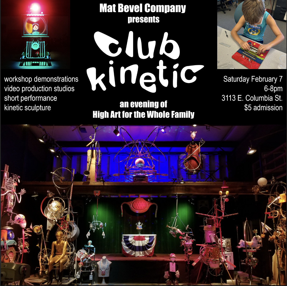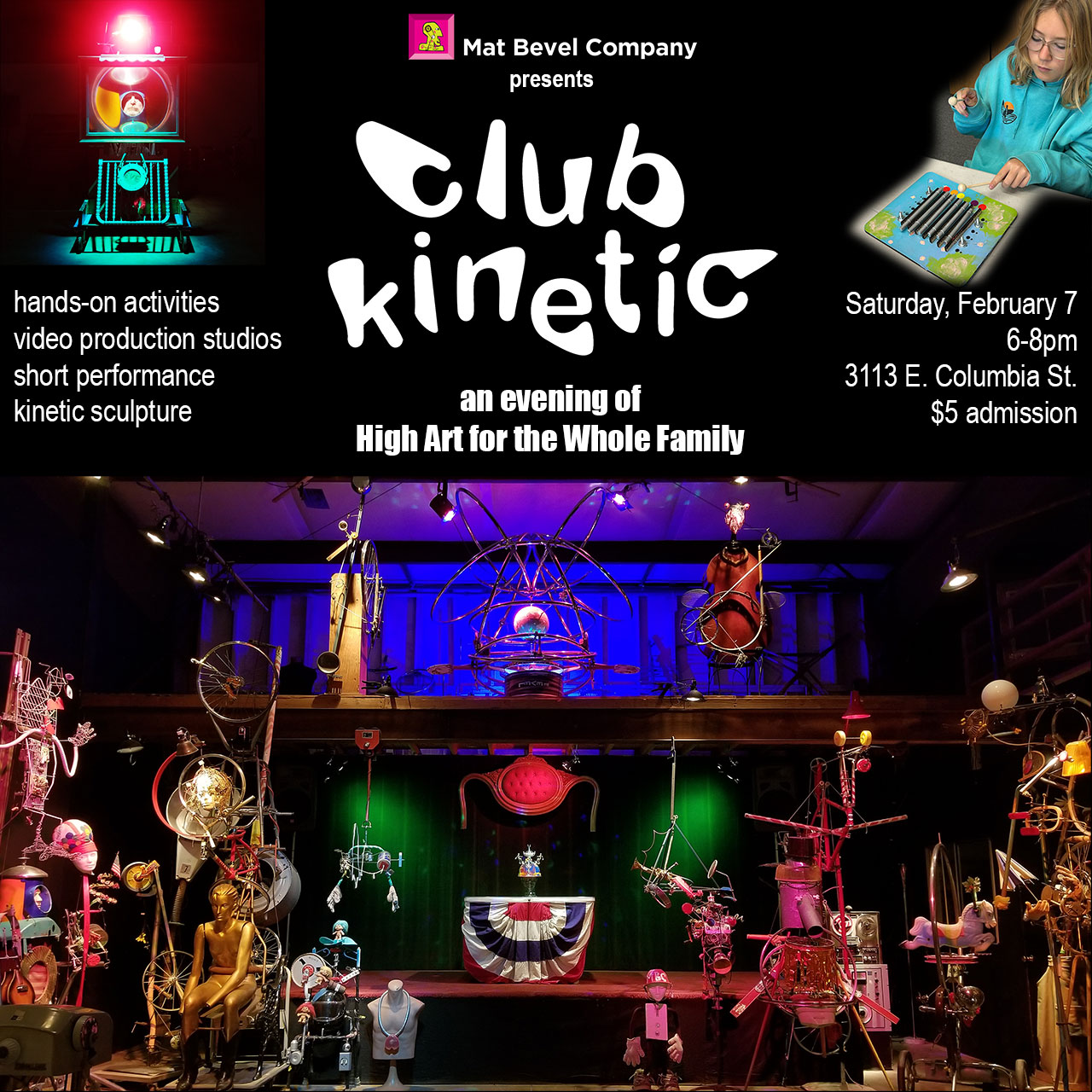 Club Kinetic is both a physical and virtual gathering place for creative constructors and makers. Inspired by the philosophy and lifelong work of kinetic sculptor, poet and Mat Bevel Company founder Ned Schaper, participants become kinetic junk sculptors—transforming discarded materials into mechanical creations that inspire curiosity, delight and new ways of thinking about waste, resources and possibility.