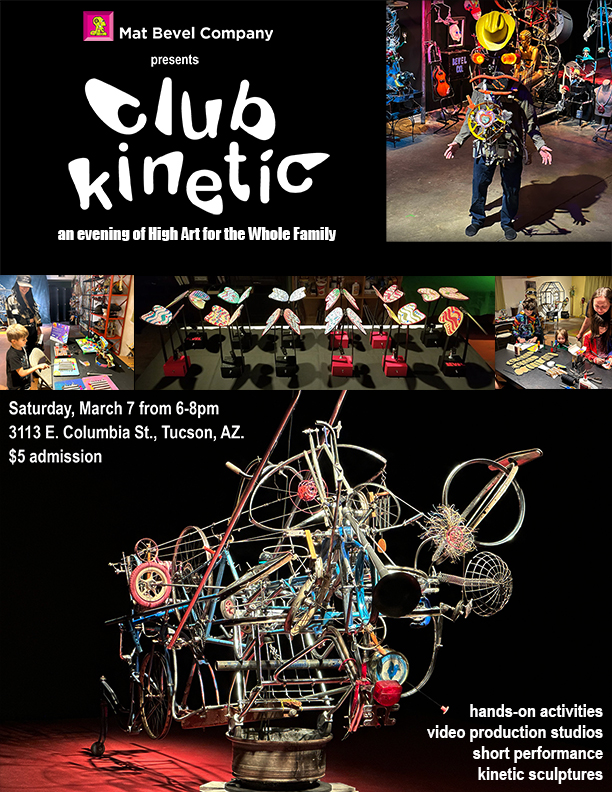 Join us for a monthly evening of hands-on making, kinetic art, music and imagination inside the World of Beveldom, listed as one of Tucson’s most wondrous art environments by Atlas Obscura.